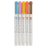 This highlighter marker set is a big hit every year with its light-colored ink that doesn't leak or smudge. The gentle colors are easy on the eyes, and the pen nibs come in thick and thin sizes on either end. These markers are great for coloring in grid squares to organize schedules or information and highlight notes. The ink is especially strong against leaking through the paper, making it a perfect match with the Hobonichi Techo.