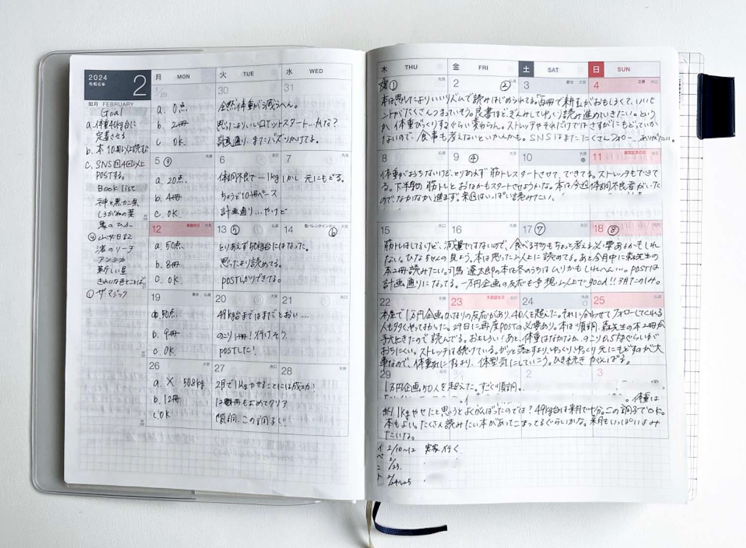 月間ページは、3つの目標の週ごとの振り返りに。