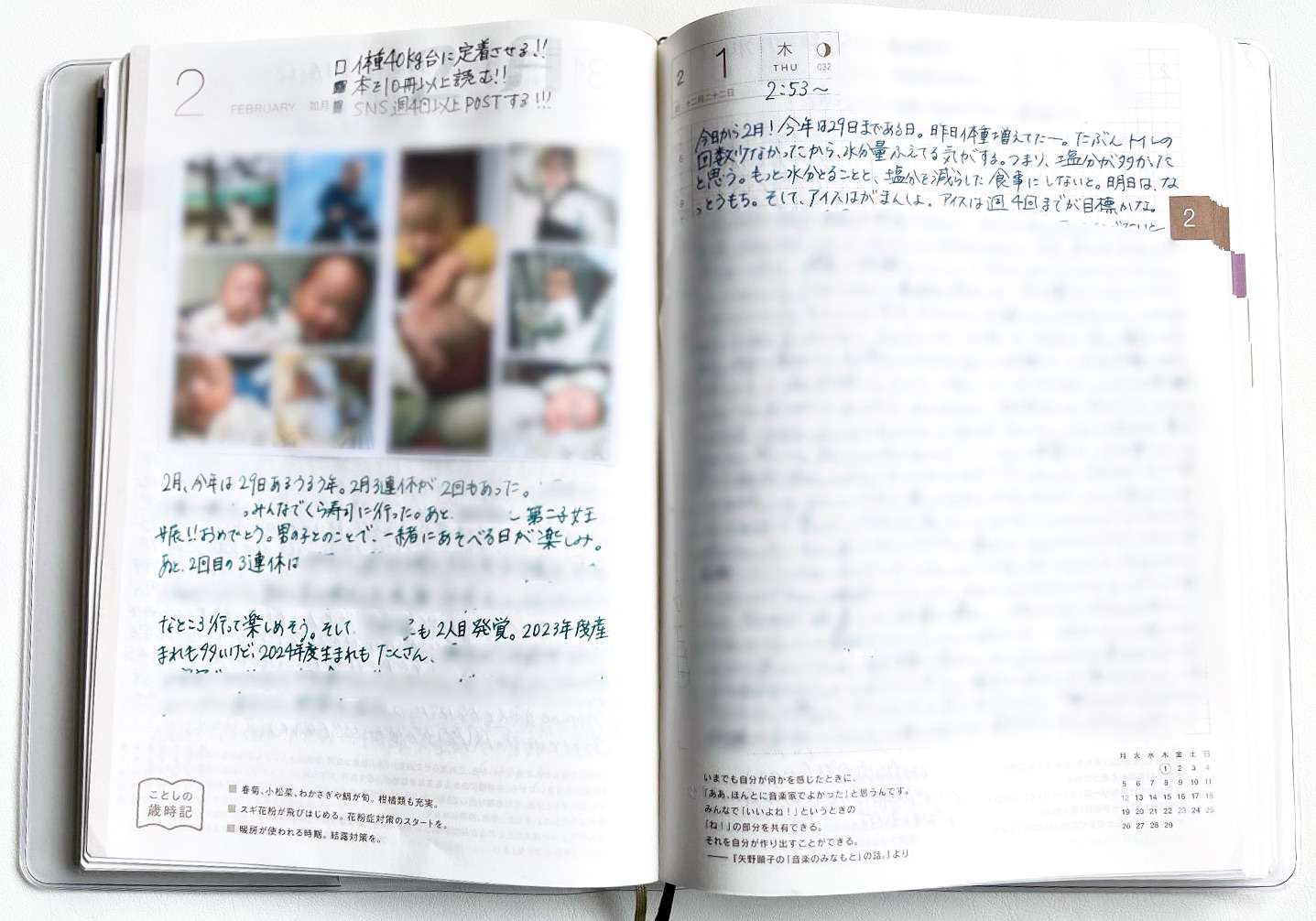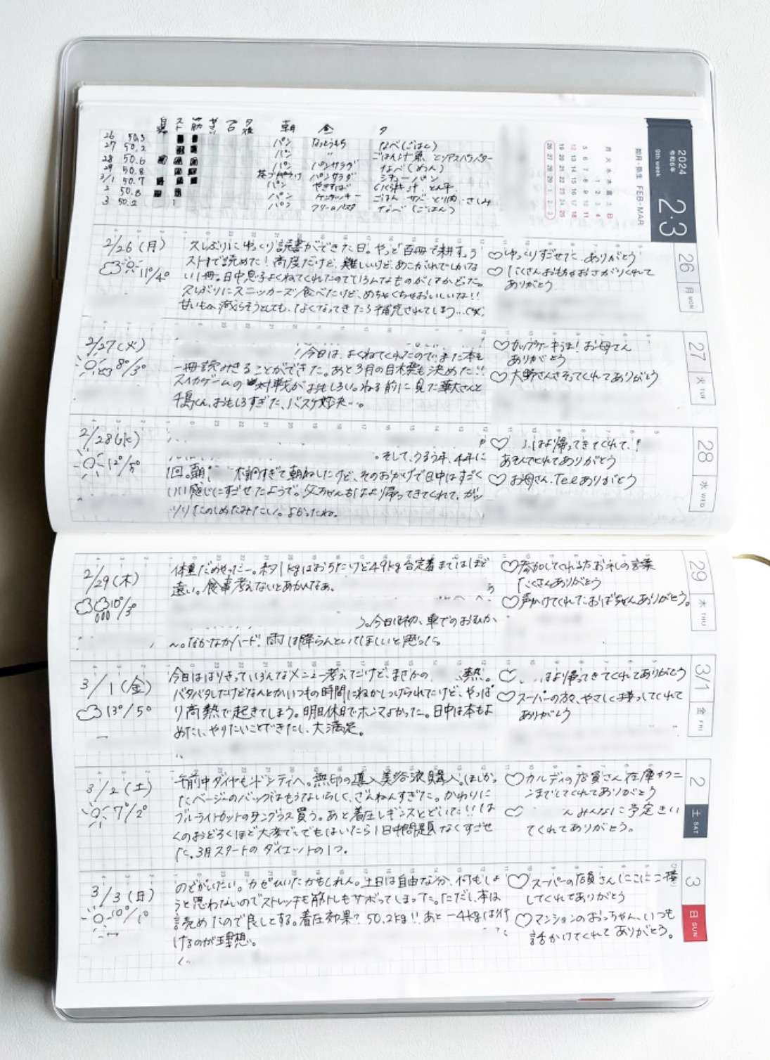 週間ダイアリーは、横向きにして