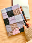 パッチワークキルトのカバーといっしょに愛用きなこさんカズンを使っているきなこさんは、手作りのパッチワークキルトのカバーを愛用しているといいます。夕暮れのカラーをイメージし、リネンやコットンのハギレを集めて作ったそうです。スコットランド在住で、日本語を使う機会がほとんどないきなこさんにとって、ほぼ日手帳は「こころの話し相手」。毎朝、自分の日誌を書く時間がとても大切なんだといいます。やさしい風合いの、世界にひとつのカバーが完成しましたね。とっても素敵です。趣味・生活日記カスタムカズン・HON A5ID: 0641