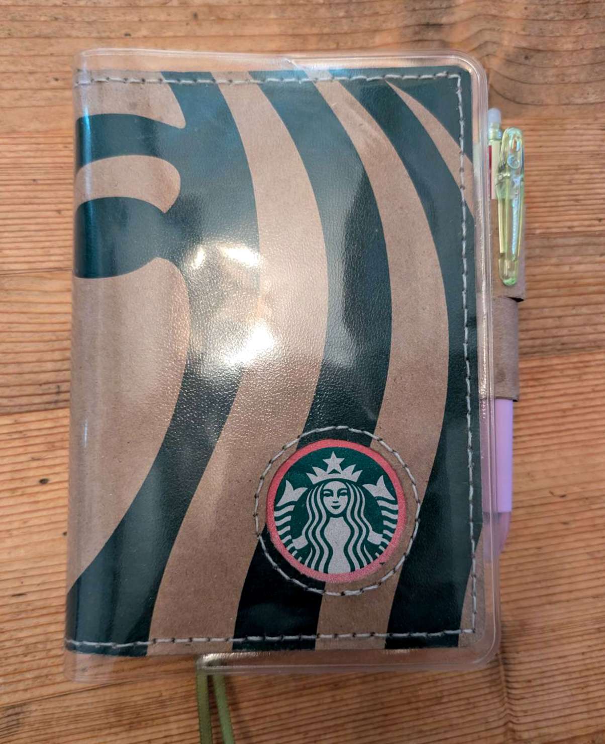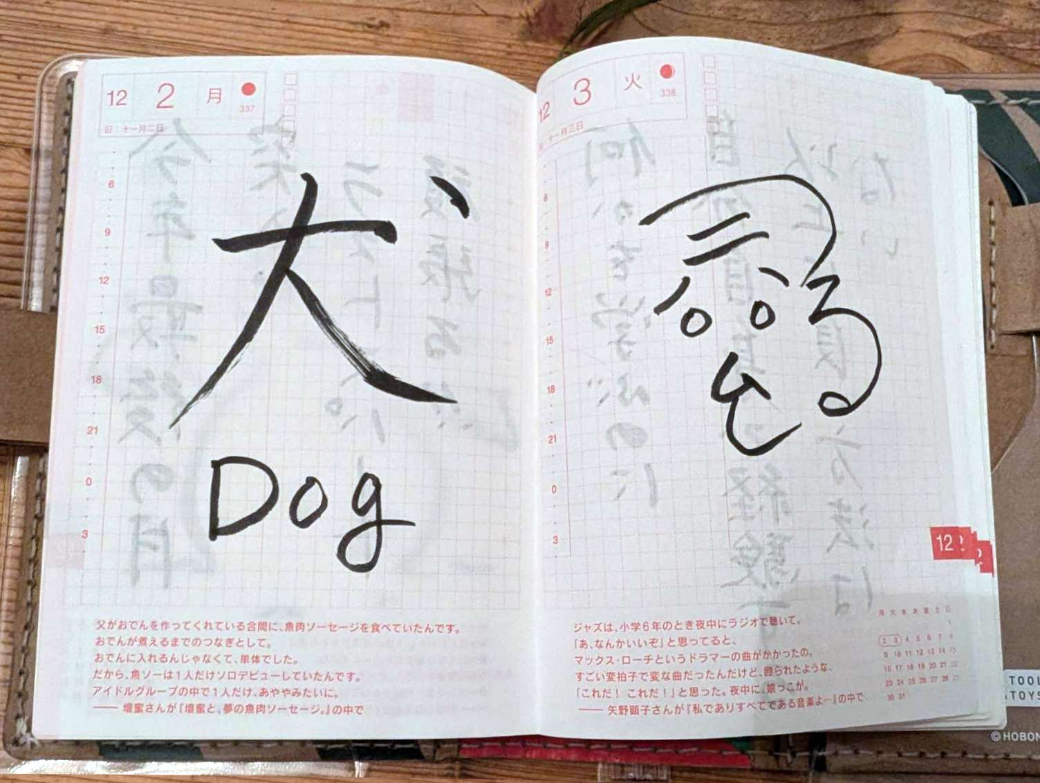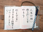 毛筆で字を書く!おきゃさんオリジナルを使っているおきゃさんは、「毛筆で美しい字を書きたい!」とほぼ日手帳で練習しているそうです。名言を書いたり、時には自由な落書きをしたり。ちなみにカバーは、スターバックスのショッパーで手作りしたもの。毛筆字の上達を願っています‥‥!趣味・生活オリジナル・HON A6ID: 0645