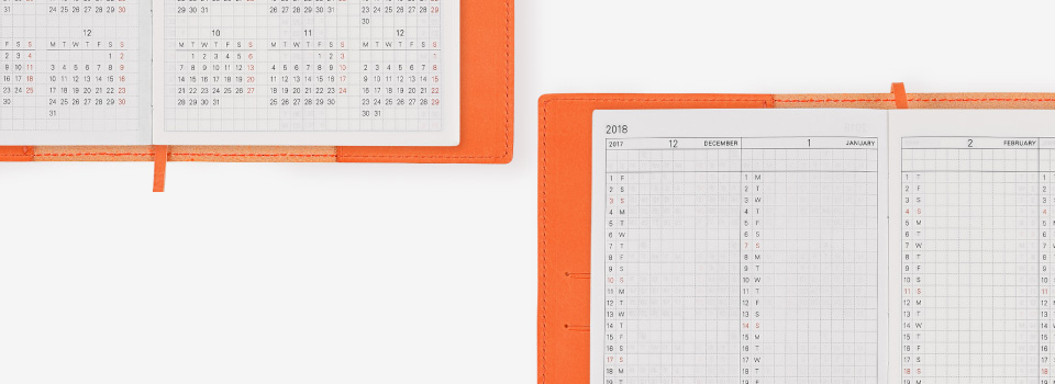 With 2 months per page, there are 8 pages covering the 16 months from December 2017 to March 2019. This section is great for tracking long-term projects or organizing a table of contents for the daily pages. The top of each monthly column includes 2 lines of space for recording things like that month’s goals or commitments, or drawing in checkboxes for a to-do list.