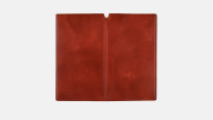 The cow leather of the 2018-edition Passport Cover is processed with “murazome,” a type of uneven dye that is rubbed in by hand to give it distinct markings.