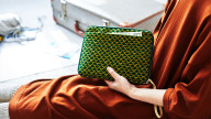 minä perhonen creates all-original textiles that are specially dyed, embroidered and woven to recreate designs that were originally hand-drawn. This pouch is namedafter the textile it is made with, called “mermaid.” This pattern, resembling fish scales as small arcs, is carefully embroidered in waves across the material.