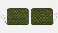 This pouch uses the same textile as the Hobonichi Techo mermaid cover, and is therefore designed in the same way: using the textile for long periods of time will gradually wear the exterior green surface thin, exposing the khaki-colored material beneath it. The embroideryprotrudes from the surface of the cover for a texture that’s nice to the touch.