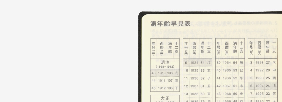 This table lists the year people were born, and their age in 2018 at a quick glance. The number to the left of the year is the corresponding year based on the traditional Japanese Imperial Era calendar, and to the right of their age is the character for the Chinese Zodiac.