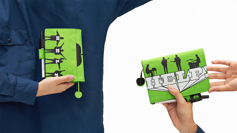 This Beatles themed cover, designed by art director Gugi Akiyama, highlights with screen-printing the silhouettes and logo images from the visual of the single “Help!,” released in 1965.