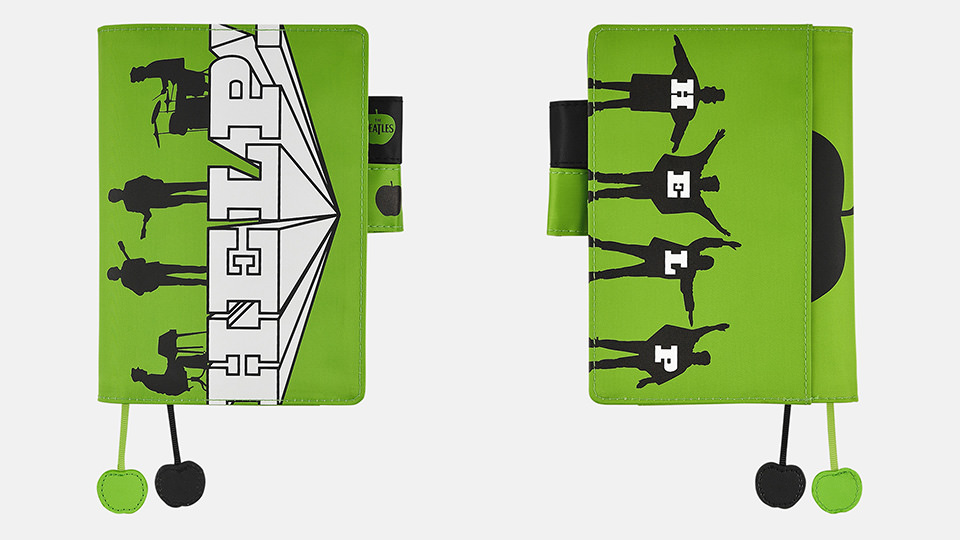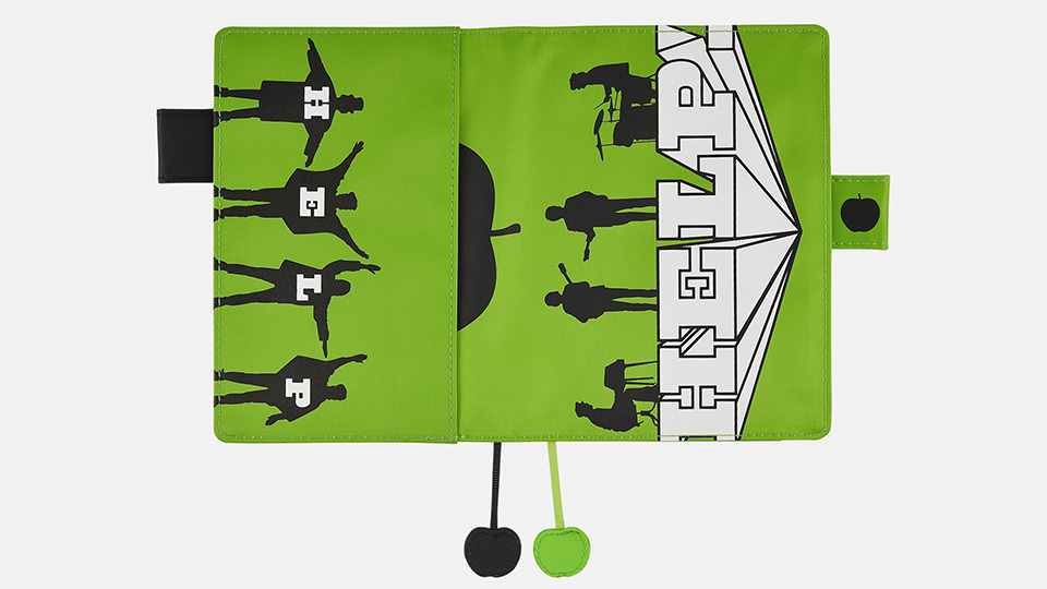 The brilliant green of the cover pays homage to the green apple logo of Apple Records, established by the Beatles. The inside pocket delights with the two-tone design of black and green, and the inimitable Beatles logo.