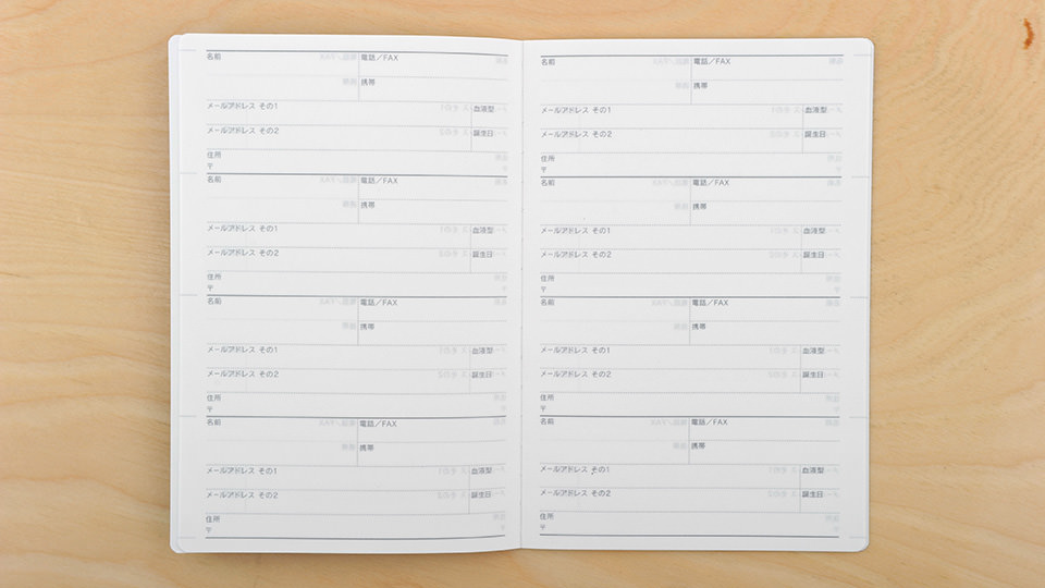 This A6 address book fits perfectly into the pocket of a Hobonichi Techo Planner / Original cover. There’s space for writing in the contact information of 128 people.