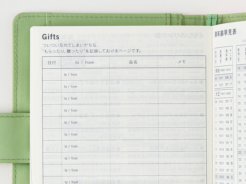 Record the presents you’ve given or received in the Gifts page so you don’t forget who gave what to who and when. This is also helpful for thank-you cards. There are spaces for 17 entries.