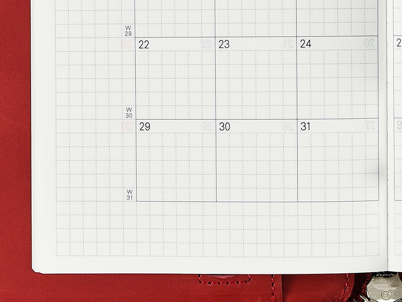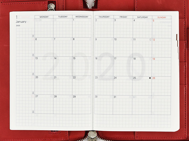 The graph paper design is lightly printed to make it easier to write in your plans and take notes in an even line. The calendar is printed in charcoal gray and a striking red for a refreshing design.