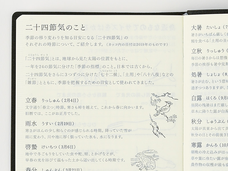 This section explains the names and origins of solar terms that make up the 24 points in traditional East Asian lunisolar calendars. These include well-known days such as the start of spring and the winter solstice.
