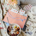 This cover brings together nuances from the pale pink of the peach blossoms and the light blue of the bright spring sky. This pure and lovely color scheme gives the cover an unassuming presence bringing a quiet happiness to your everyday life.