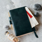 This deep green leather cover offers a classic design. The cover is named Forest for the way it invokes the feel from deep within a lush forest. The cow leather contains a chrome tanning and deepens in luster over continued use.