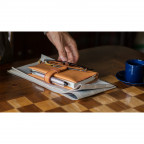 Naturale undergoes a transformation with continued use. Every touch of your hands deepens the cover’s shine and color. The leather is accented with red stitchwork.
