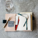 The pen holder is designed to perfectly fit the 12.2 mm (0.48”) diameter Jetstream pen offered as a free bonus gift with select Japanese-version Hobonichi Web Shop products. Pens with certain shapes and materials may be difficult to pull through the holder. The holder can fit pens up to 13.5 mm (0.53”) in diameter.