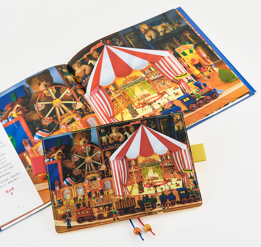 Included with the techo cover is a card with a riddle like those featured in the books. The riddle, written by Walter Wick, is included in English alongside the Japanese translation by Shigesato Itoi, who translated the series into Japanese. Open up your cover to see the full photo and enjoy the beloved picture puzzle.