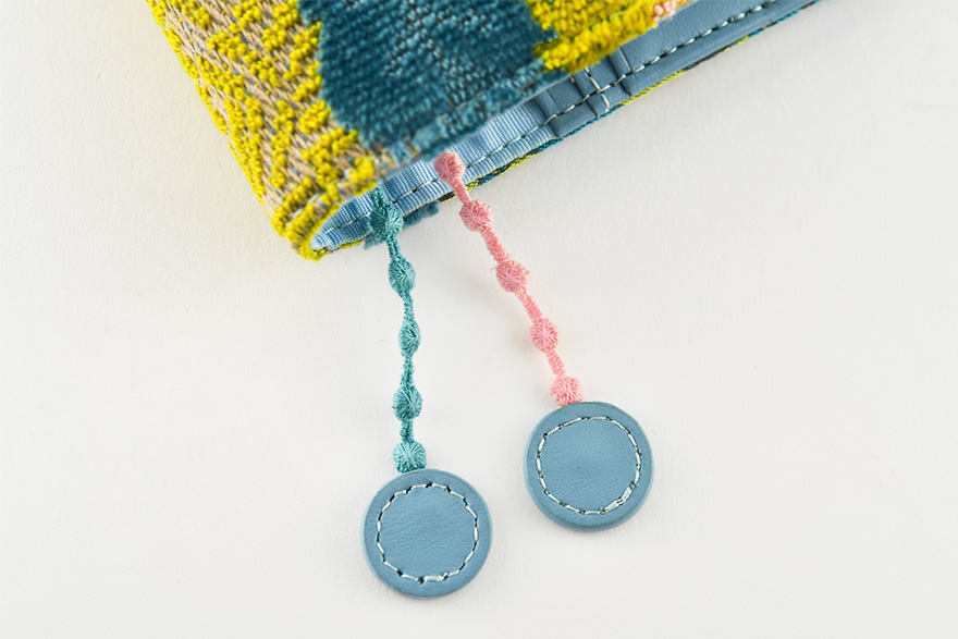 The bookmarks of this cover use original mina perhonen lace straps. If you see any loose threads, we recommend refraining from pulling on it and instead tucking it between other woven threads.