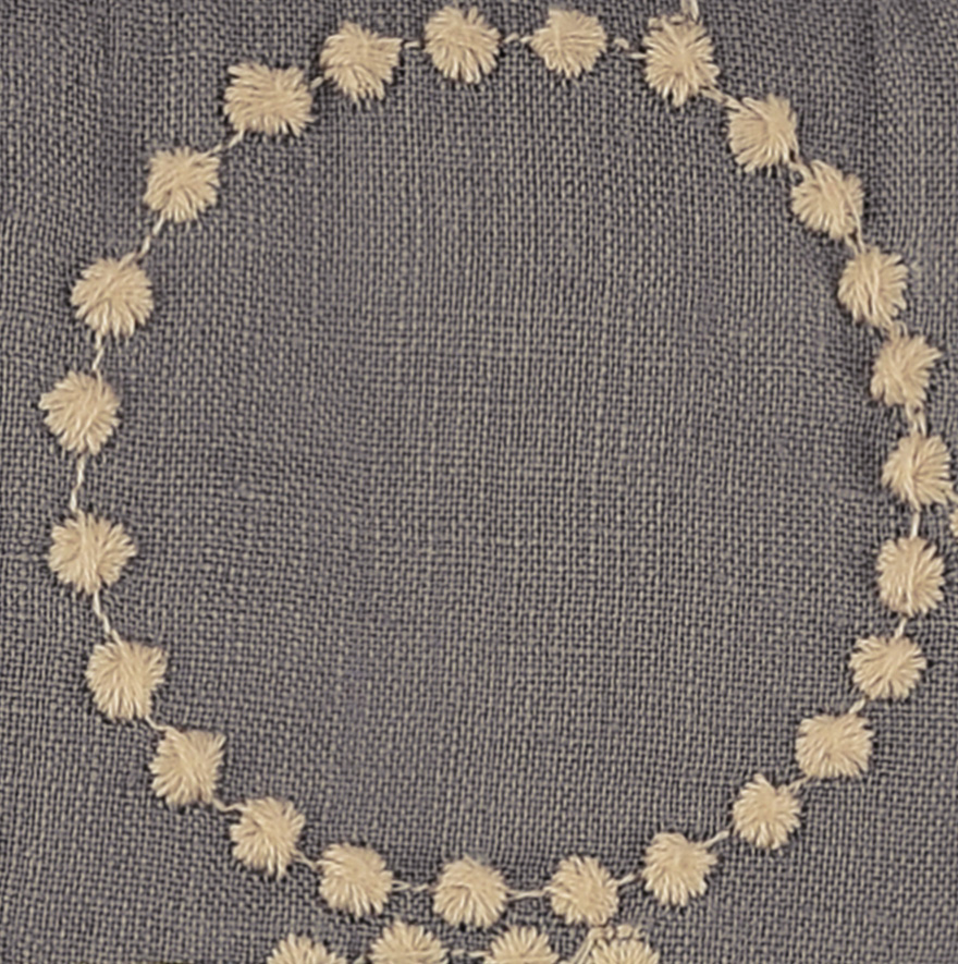 Freehand-drawn circles are embroidered in dots that protrude from the fabric in this minä perhonen classic.