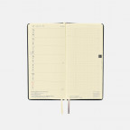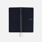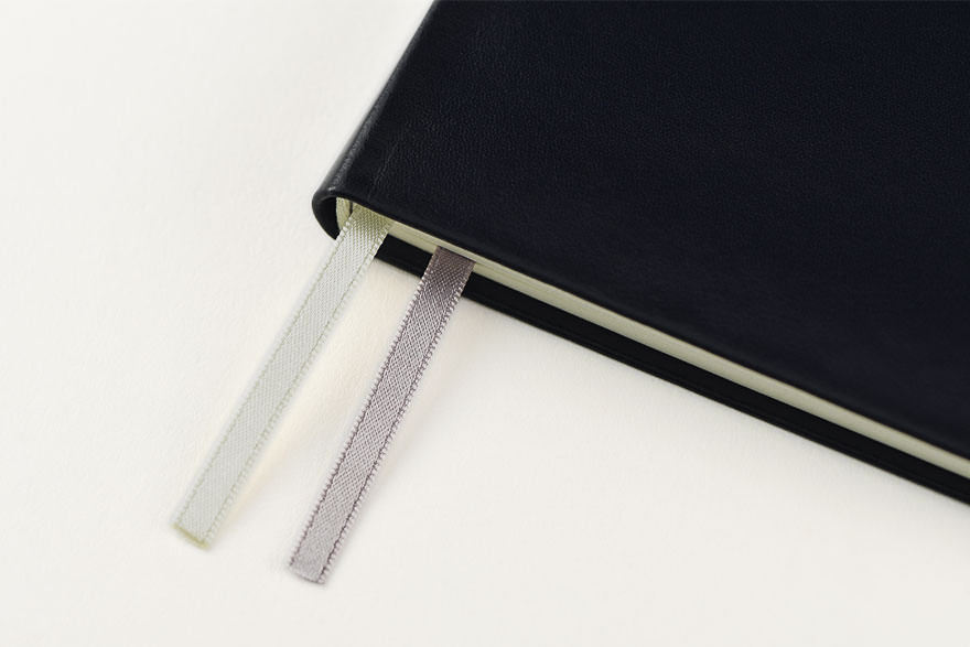 This 2019 edition leather Weeks book features durable and comfortable cow leather for the attached cover. The shiny satin bookmark ribbons and headband on the book spine establish a slightly more elaborate construction than usual.