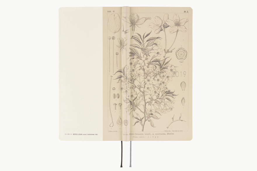 This Weeks book features an intricately-drawn illustration of a sakura, or cherry tree. The image is from the preface of the first volume of a book series called “Flora Japonica” written by botanist Tomitaro Makino and released in 1900. The page featured an entry on the Yamazakura, which means “mountain cherry” and is often seen as a symbolic tree of Japan. This diagram is drawn out with such detail, it will leave you mesmerized. The rough fabric of the book cover is modeled after canvas, and the deep knowledge, experience, and careful observation behind the botanical illustration make this book a joy to have in your daily life.