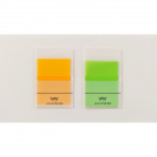 The matte surface of this film sticky note makes it relatively easy to write on with most pens. The larger notes are especially easy to write on with the extra space, making it easy to move notes around your pages. Please note that some ink types may take longer to dry on the matte surface of the stick notes. For a larger writing surface, we recommend the L-size sticky note set.