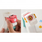 The printer does not come with tape included, so also for sale are three varieties of tape at two rolls each. Also available for purchase is the Shape Cutter Set which allows you to cut the stickers into the shape of circles, hearts, or flowers.