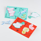 The lively and playful circus-themed sticky note pads have three designs and 20 sheets each. There are two types to choose from: “Blue,” which has a ribbon, a unicorn, and a seal, and “Red,” which has pen ink, a rabbit, and an elephant.