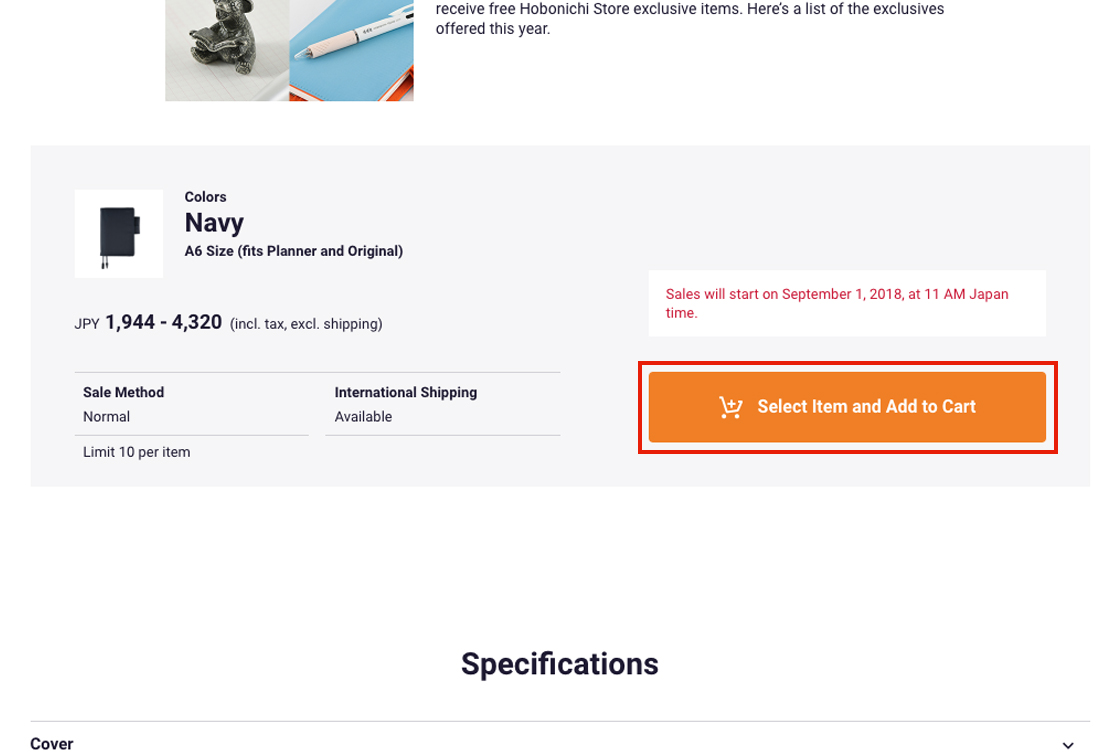 *This service is only available for the Hobonichi Techo. Restock notification emails are not available for accessories.