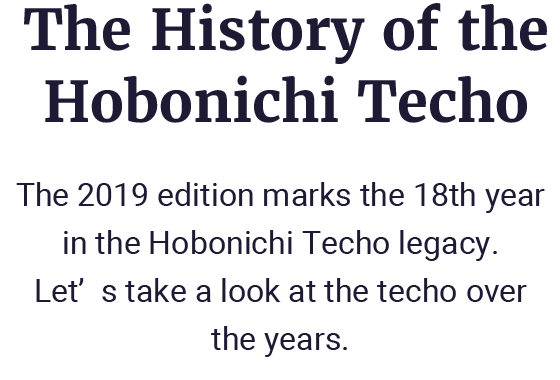 The Hobonichi Techo was born from the website Hobo Nikkan Itoi Shinbun, started by Shigesato Itoi in 1998. In the spring of 2001, the idea of a Hobonichi Techo was originally presented during a development meeting exploring original goods for the website. When we polled our readers to ask who would be interested in a Hobonichi planner, over 700 respondents answered with a resounding “yes,” greenlighting the Hobonichi Techo project.