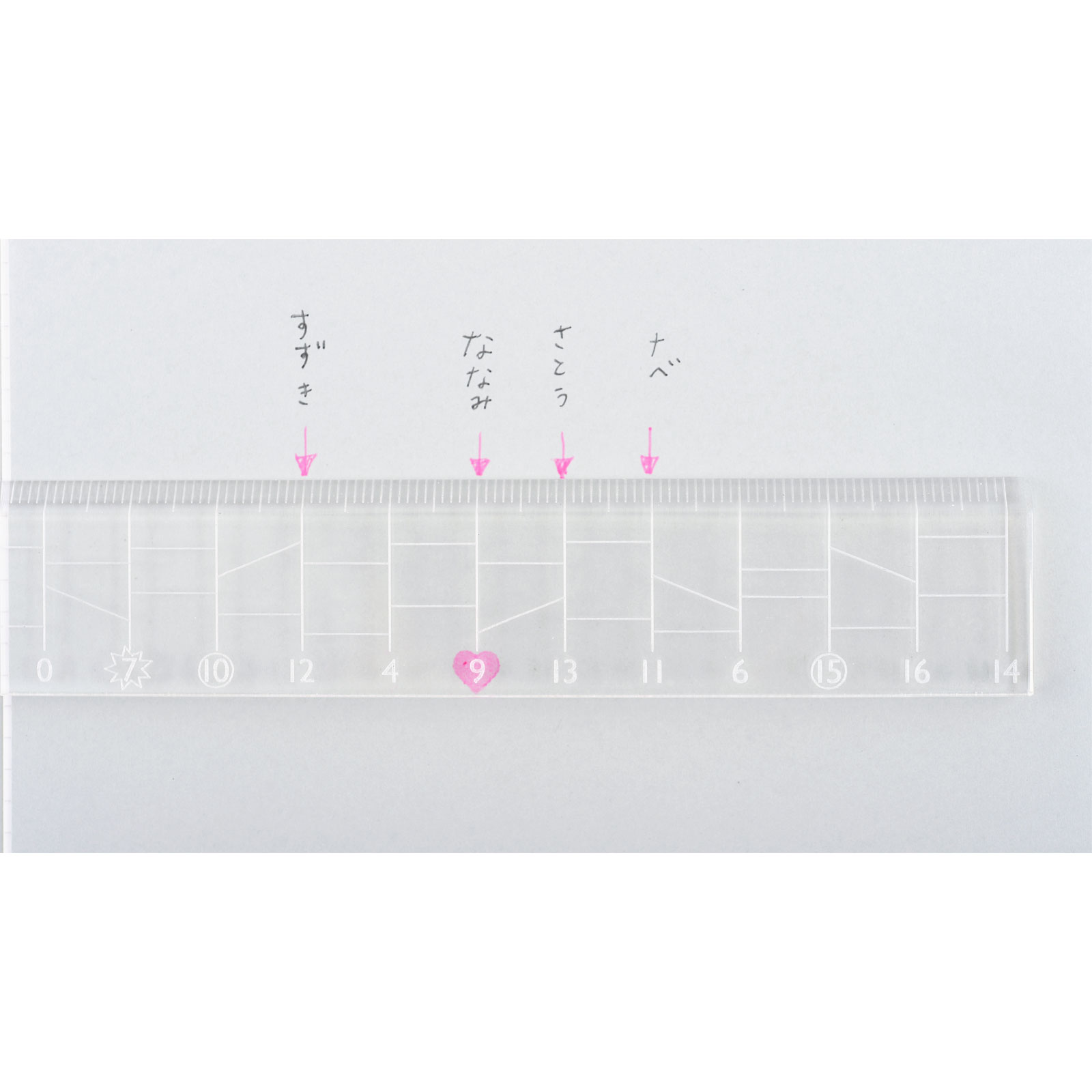 AMIDA scaleThis 16 cm ruler contains the outline for the Japanese pencil-and-paper game Amida-kuji, in which each person chooses a horizontal line and follows the path downward, taking every single turn until they reach the randomly-assigned result at the bottom.