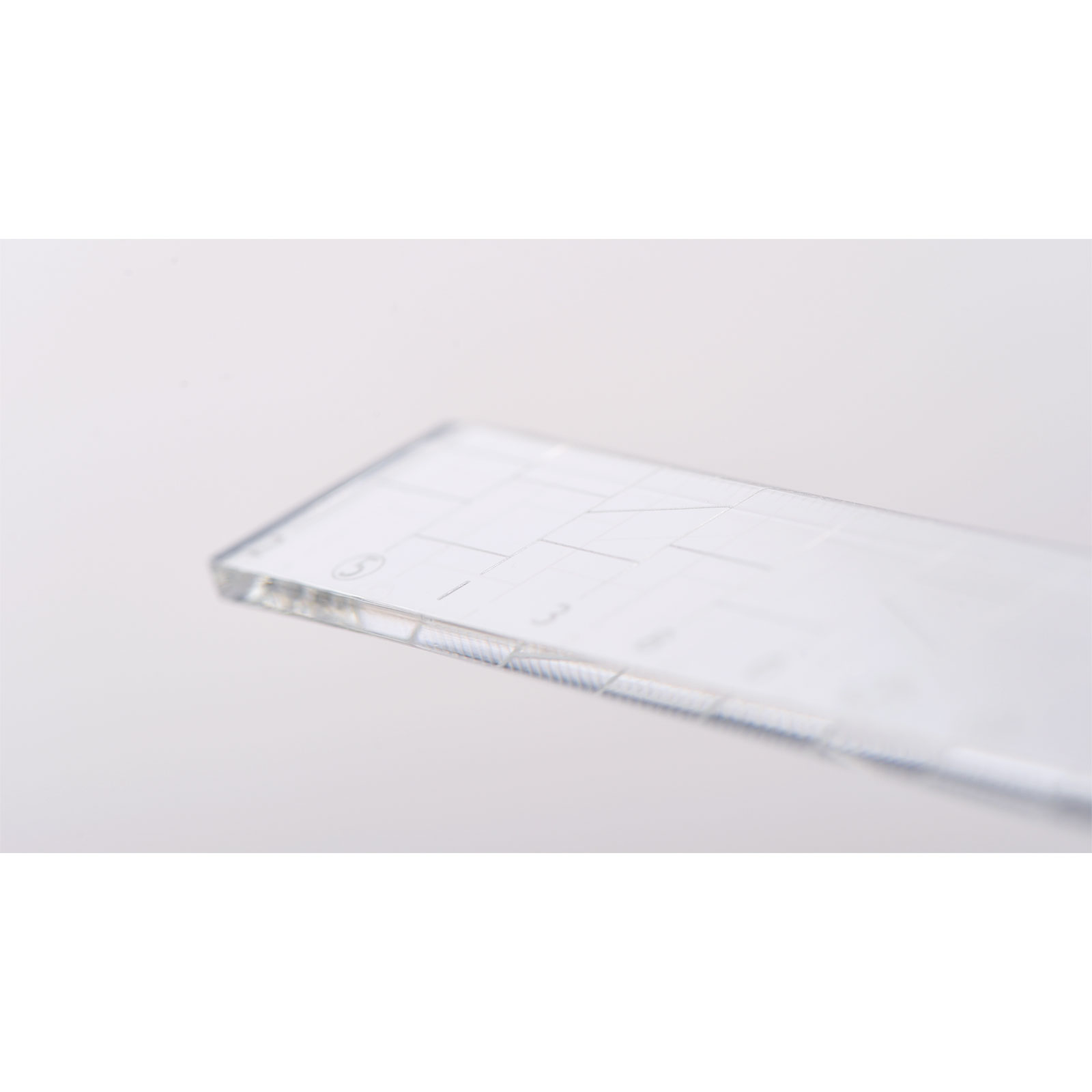 The centimeter scale markings have been laser-etched into the acrylic, so they will not fade.