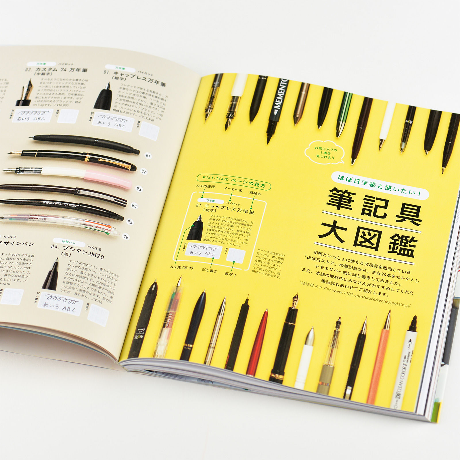 Also included is a section, Encyclopedia of Writing Utensils in which we recommend writing utensils to use with the Hobonichi Techo, by showing images of the test-entries done by each item.