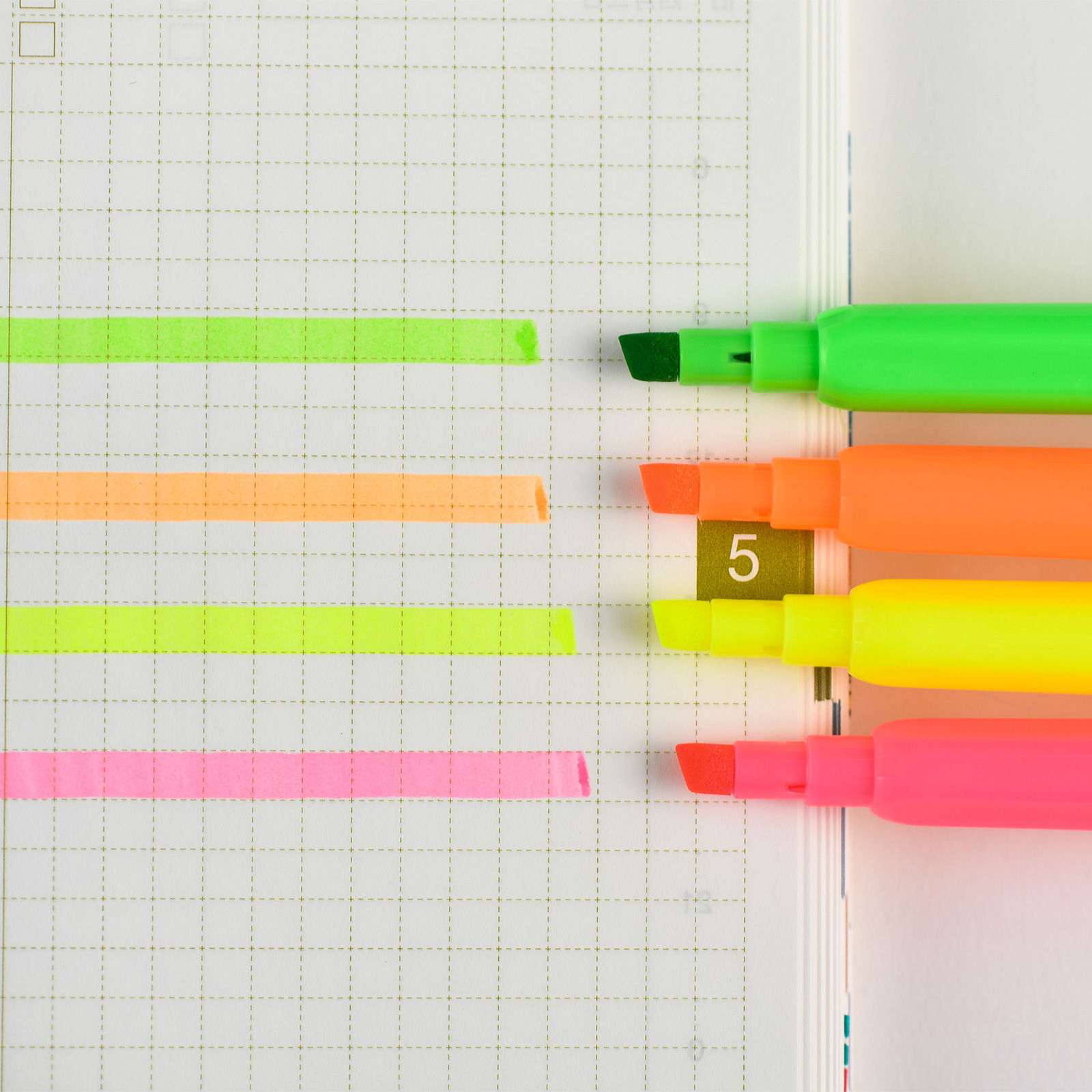 This highlighter set from Koh-I-Noor, a venerable Czech stationery maker, comes in 4 shades: pink, orange, light green, and yellow.