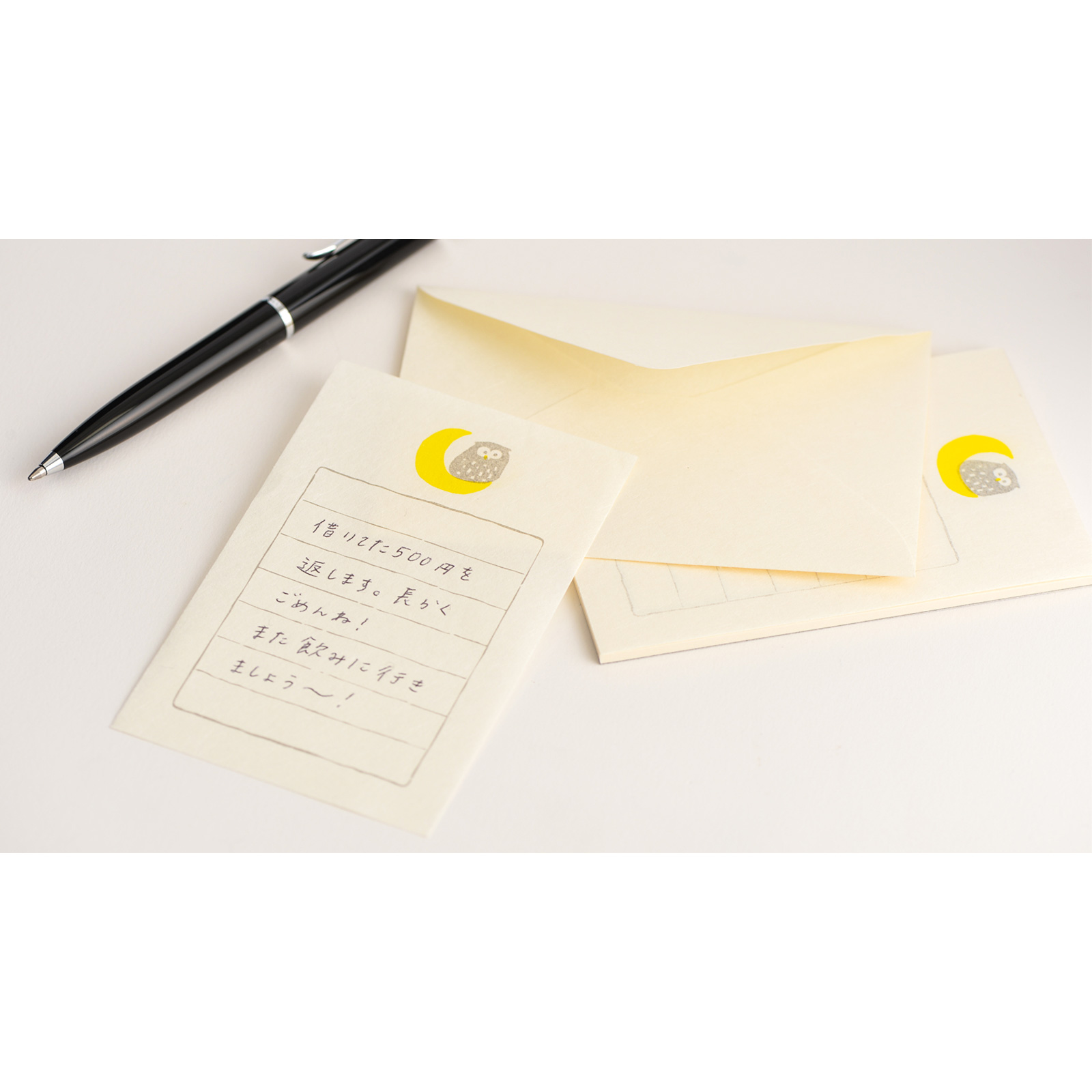 These small letters are perfect for writing a quick thank-you or leaving a note for someone. The set includes 30 pieces of paper and 5 envelopes, all in a compact size that fits in the palm of your hand or neatly into a Hobonichi Techo cover pocket.
