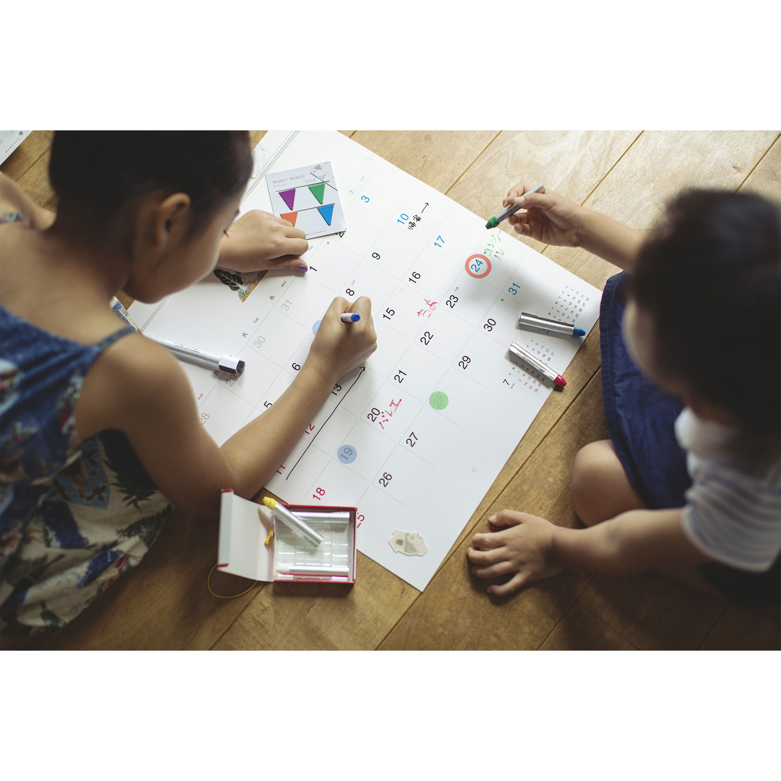 Having an erasable calendar makes it comfortable to jot down plans, knowing you can easily edit it later if anything changes. This flexibility makes it great for any use — tracking schedules of the whole family, keeping a personal calendar, making announcements in the office, tracking project progress, and more. The extra touch of convenience makes it popular both at work and at home, and it has been the best-selling calendar at Loft department stores in Japan since its release 13 years ago.