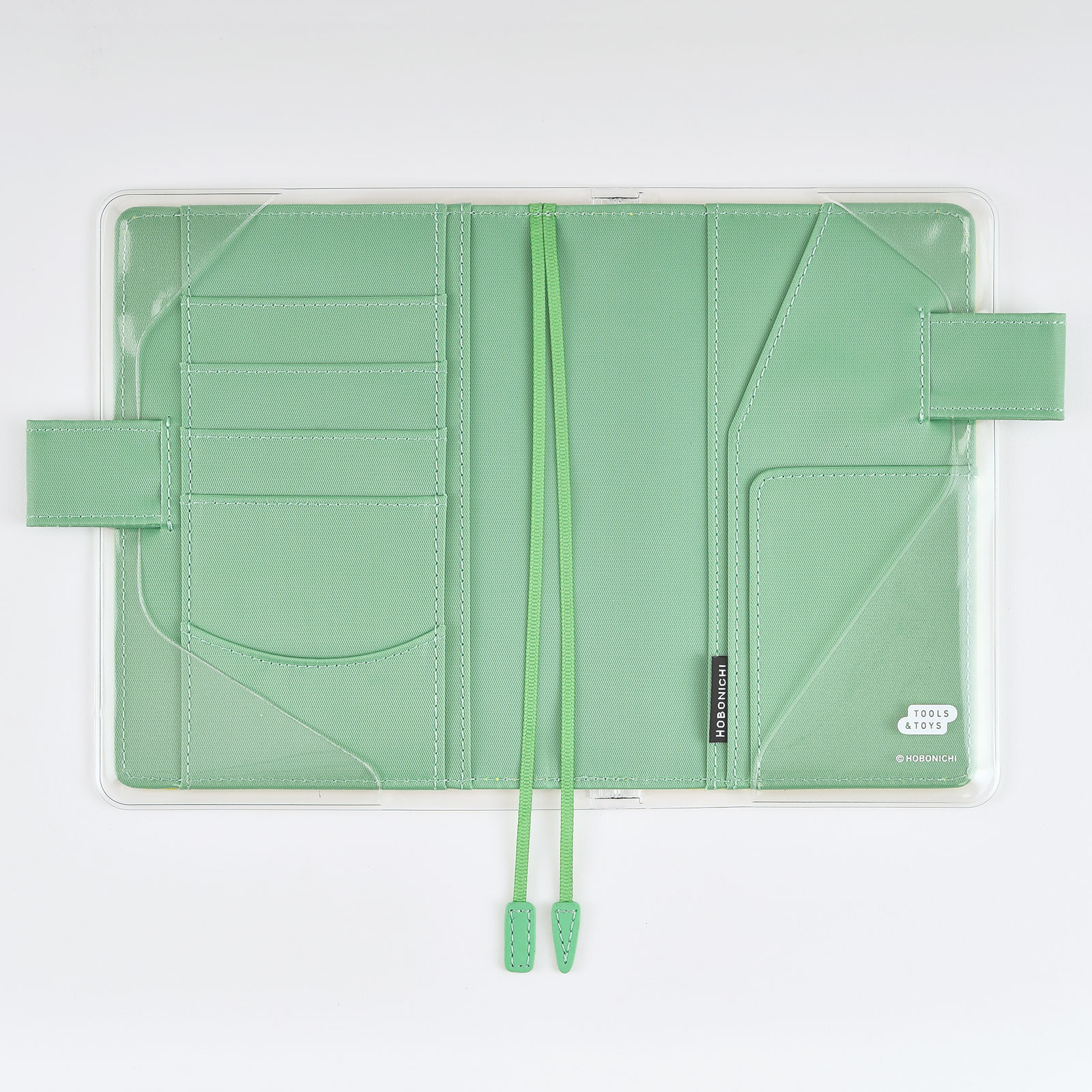 Cover on Cover is an optional, extra covering that fits select Hobonichi Techo covers to protect them from wear and tear. (Not for use directly on book.) It also provides a place to store postcards, pictures, and other decorations to spruce up the look of your cover. Feel free to fill it with family pictures, travel post cards, and other things that cheer you up!