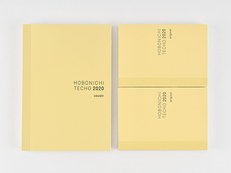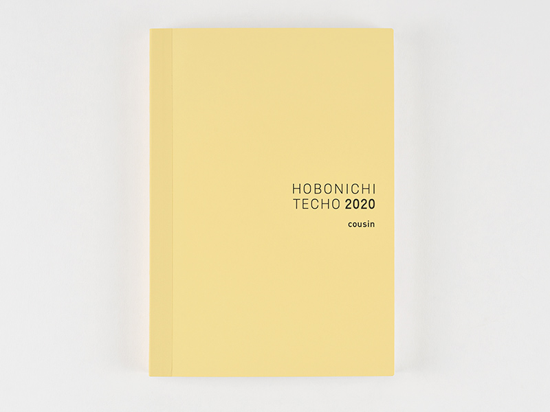 The front of the planner book is made of strong card stock with a soft ivory hue, and includes the label “HOBONICHI TECHO 2020 cousin” printed in gray letters. The April-start version also lists the label “spring.”