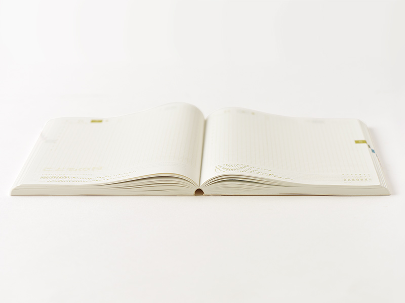 Special stitch-binding allows the planner to lay completely flat without having to hold it down.