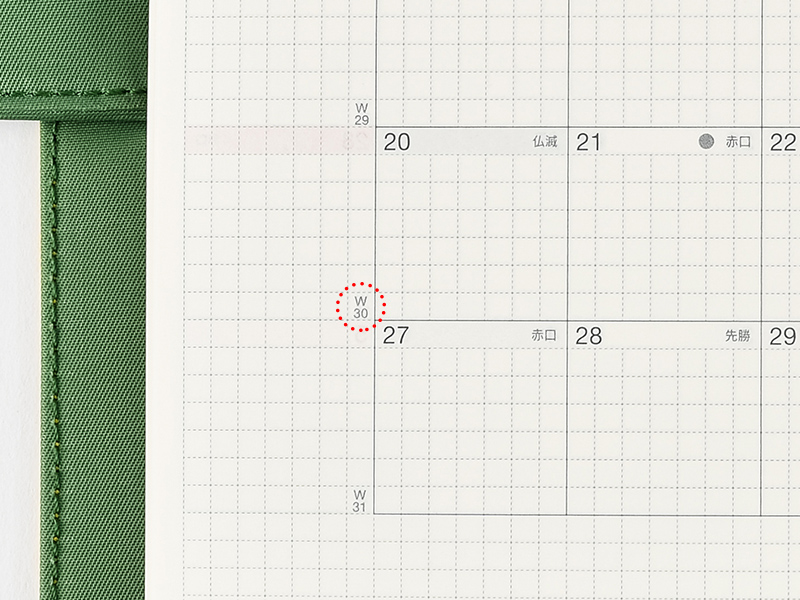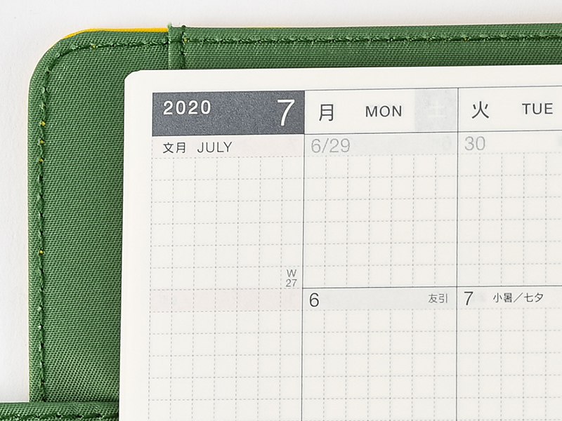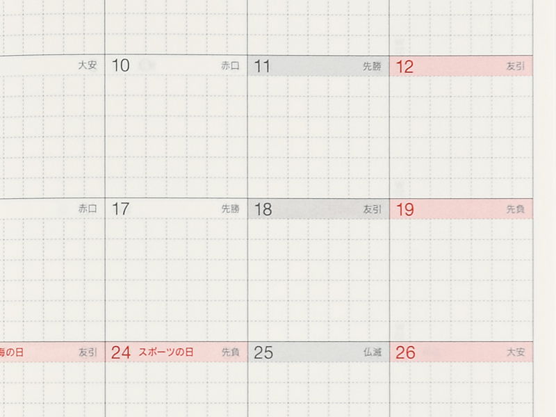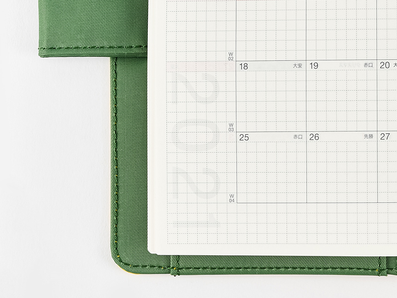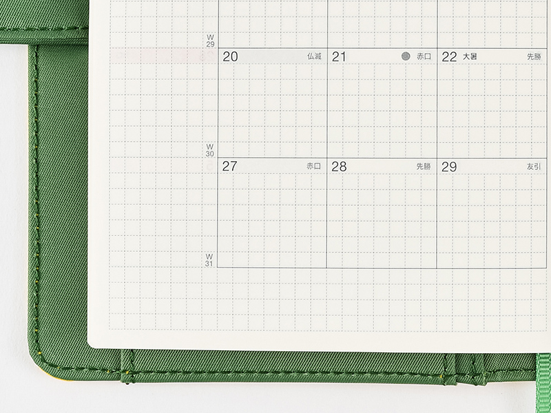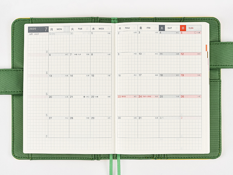 The monthly calendar is ideal for managing schedules. The graph paper design is lightly printed to make it easier to write in your plans and take notes in an even line. The blue gray and red print both allow for high visibility when writing in the calendar.