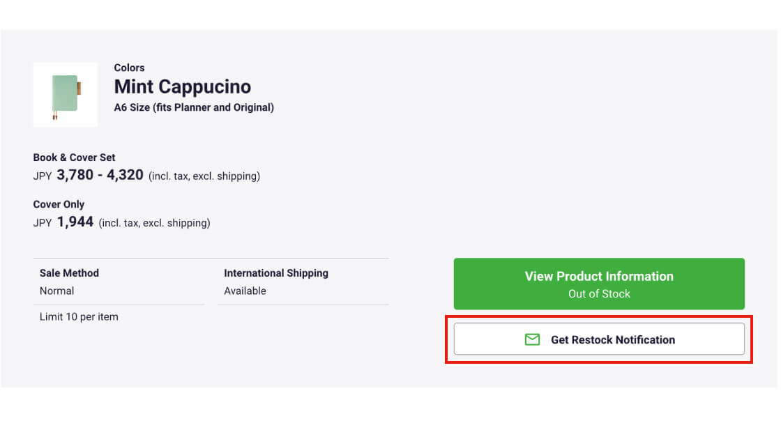 *This service is only available for the Hobonichi Techo. Restock notification emails are not available for accessories.