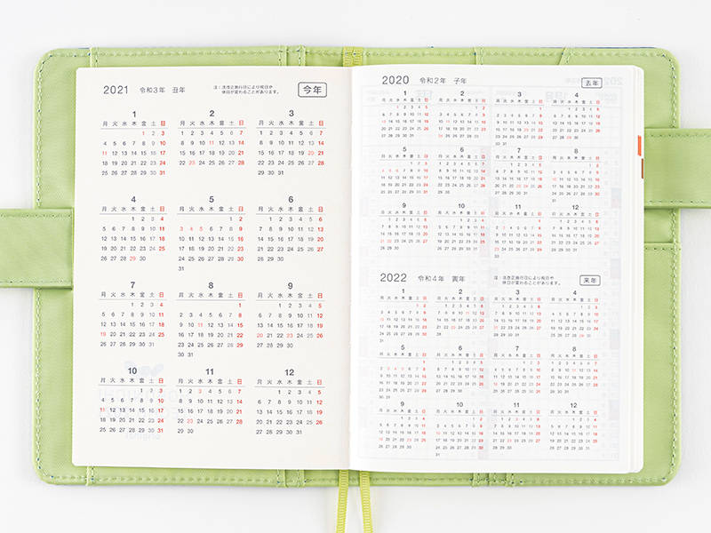 With 2 months per page, there are 8 pages covering the 16 months from December 2020 to March 2022. The top of each monthly column includes 4 lines of space for recording things like that month’s goals or commitments, or drawing in checkboxes for a to-do list.