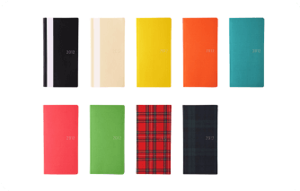 The theme for this year’s techo was “Smile.” The Hobonichi Store exclusives included a small pocket mirror with a smile printed on the surface. 2012’s featured cover, a bright yellow design also called Smile, showcased a sketch by mina perhonen’s Akira Minagawa. This year’s fun cover lineup included collaborations with Disney, sunui, Makino Collection, and Liberty, as well as the debut of the pouch-like Zippers covers. Zippers covers offered users a secure place to store important items, giving the techo more opportunities to shine. In its second year, the Weeks was now offered in 11 designs, including bright colors and even plaid.