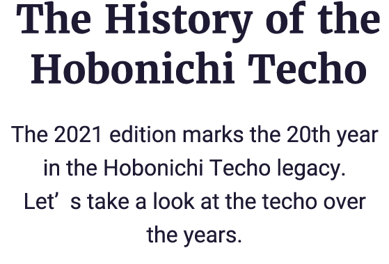 The Hobonichi Techo was born from the website Hobo Nikkan Itoi Shinbun, started by Shigesato Itoi in 1998. In the spring of 2001, the idea of a Hobonichi Techo was originally presented during a development meeting exploring original goods for the website. When we polled our readers to ask who would be interested in a Hobonichi planner, over 700 respondents answered with a resounding “yes,” greenlighting the Hobonichi Techo project.