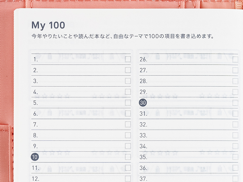 You can use this 100-item list to make a list of up to 100 entries for anything you want: things to accomplish this year, books you’ve read, movies you’ve seen, snacks you’ve tried, shops you want to visit — it’s up to you!