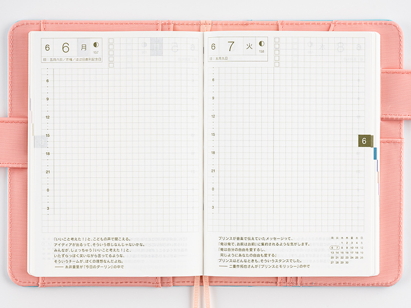 From the heartfelt to the humorous to the whimsical, each page of the planner features a quote in Japanese, specially selected from the planner’s parent site, Hobo Nikkan Itoi Shinbun. Currently, the quotes for the Original version are only in Japanese. If you would like the quotes in English, please buy the Hobonichi Techo Planner.