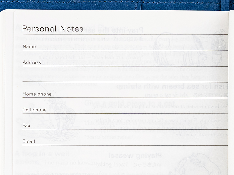 This page provides a place to keep up to 7 entries of often-used contacts and emergency contact information.