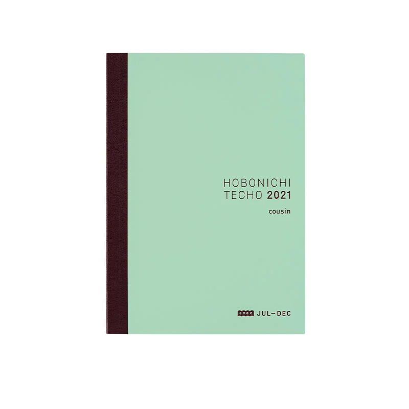We first introduced the Avec in response to customers who struggled with bulging books after collecting a year's worth of pasted material in the daily pages. The Avec version splits the A5 Hobonichi Techo Cousin, design and all, into books of six months each with only slight variances in calendar spans and the number of extra pages in the back. This allows you to fill the pages to your heart’s content with scheduling, diaries, little notes, tickets, photographs, doodles, and anything that strikes your fancy.