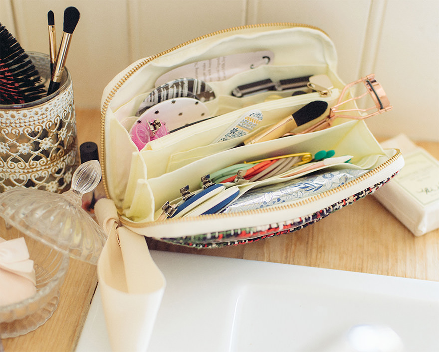 3. All the different compartments make the Áne a great makeup bag. You can organize the items by size and shape.