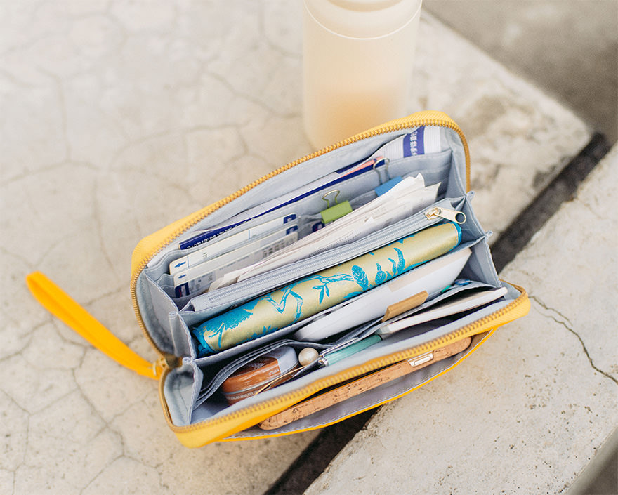 6. Keep your checkbooks, cards, IDs, and other financial documents in the pouch so you can have everything you need in one place when going to the bank.